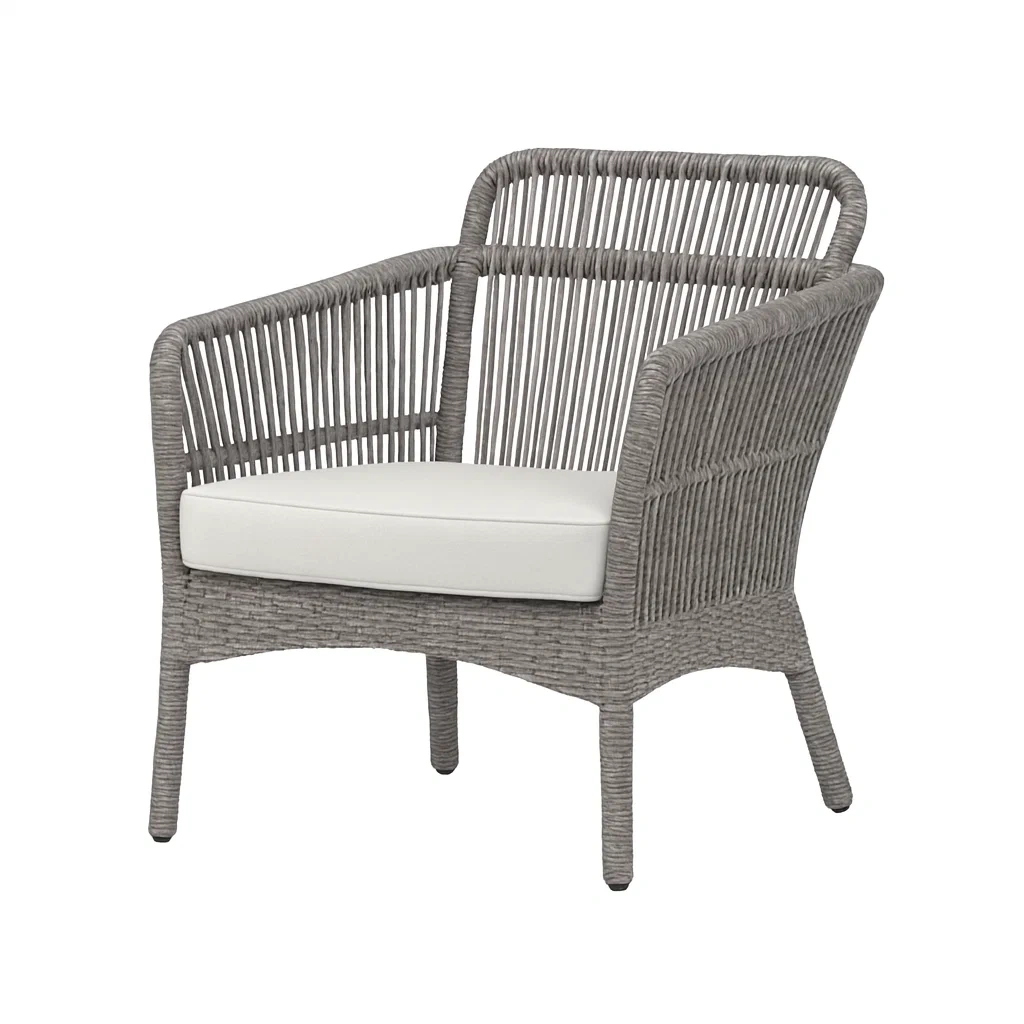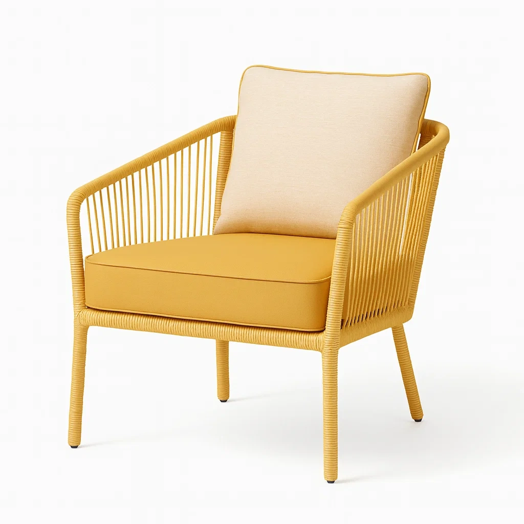 Fauteuil en rotin synthétique avec coussins beiges et structure en métal noir